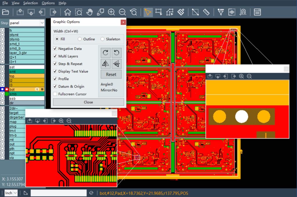 OpenCAM是由無(wú)錫東領(lǐng)智能科技股份有限公司開發(fā)的一款輕量級(jí)PCB CAM圖形查看器。基于C++開發(fā),具有超高的圖形顯示效率,完全支持ODB++8.1格式。
